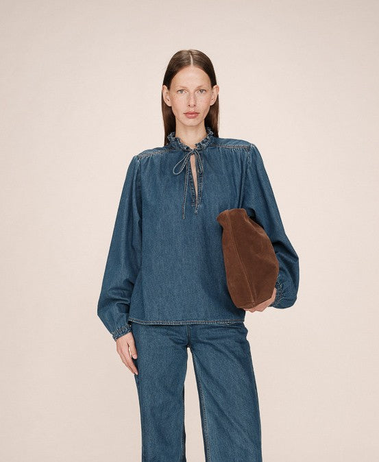 Le must have de cette saison, notre blouse SALSA à la coupe bohème chic. Revisite le denim et structure ta silhouette en avec un pantalon taille haute et une paires de talons camel.