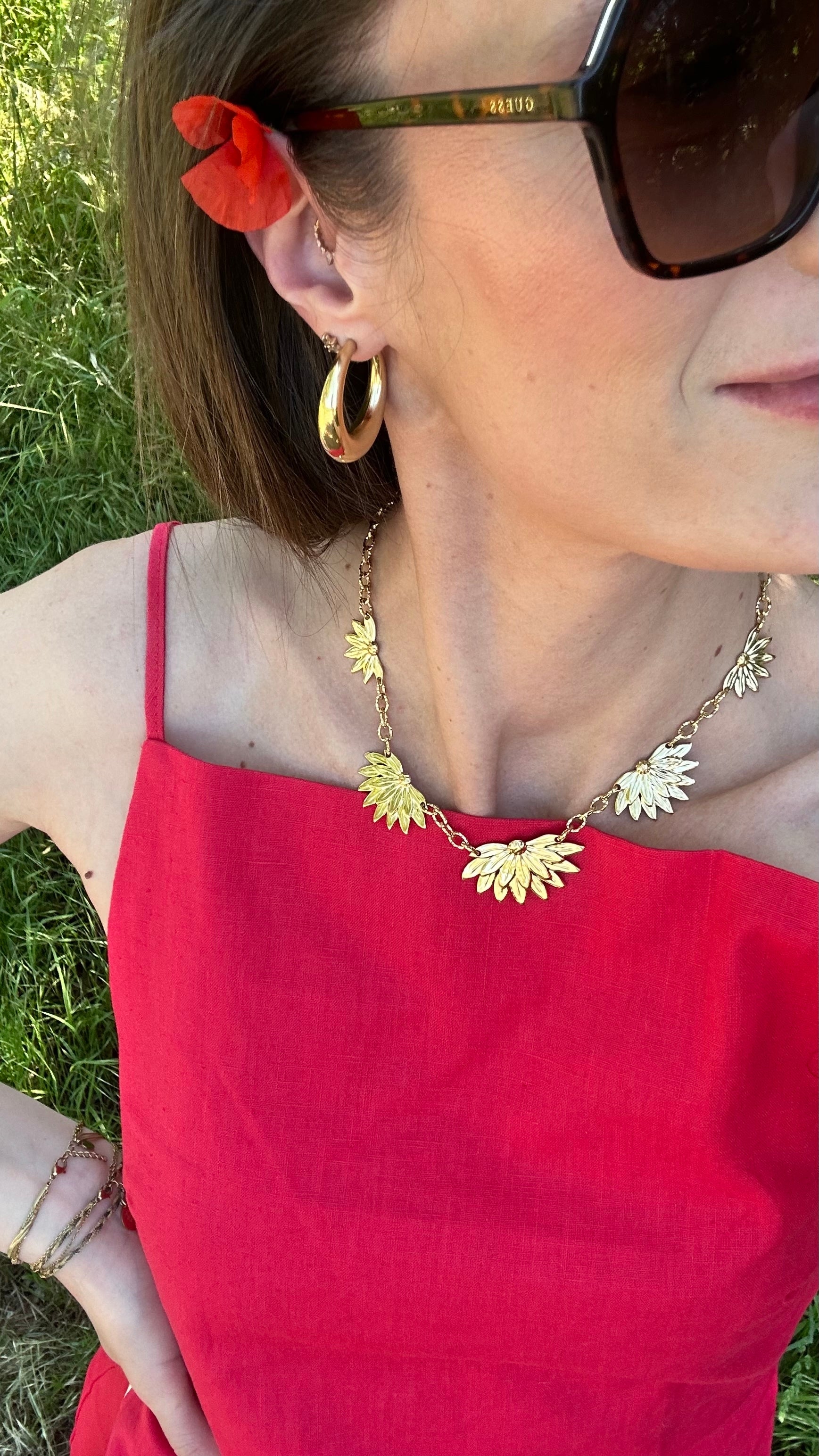 Collier court style plastron, orné de magnifiques fleurs en acier inoxydable.