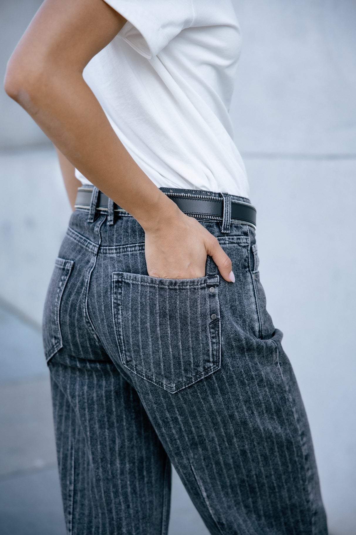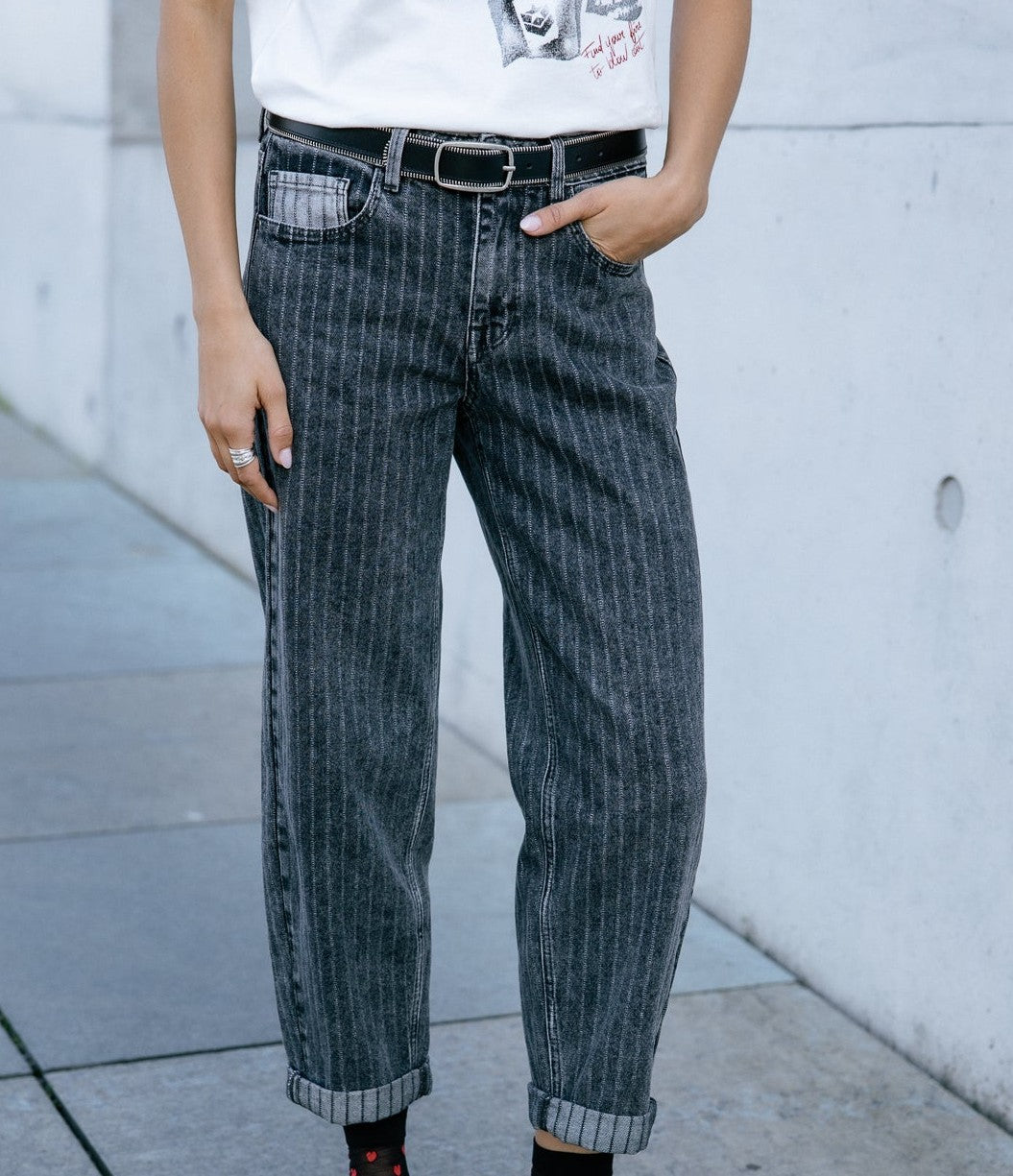 Le boyfriend ultra confortable gris et sa fine rayure pour un look frenchie.